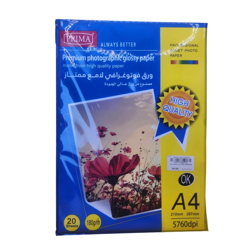 حوّل صورك الرقمية إلى ذكريات ملموسة بجودة احترافية مع ورق الصور الفوتوغرافي اللامع الممتاز من PRIMA. تم تصميم هذا الورق خصيصًا ليناسب الطابعات النافثة للحبر، حيث يمنح صورك ألوانًا حية وتفاصيل دقيقة بفضل قدرته على دعم دقة طباعة تصل إلى 5760dpi. بوزن 180 جرام/م²، يتميز الورق بسماكة وجودة عالية تمنحه ملمسًا احترافيًا وتمنع انحناءه. تأتي العبوة بـ 20 ورقة، مقاس A4 (210 × 297 مم)، مما يجعله الخيار الأمثل لطباعة الصور الشخصية، العروض التقديمية، أو أي مستند يتطلب جودة طباعة استثنائية. اختر ورق صور PRIMA لضمان أن تبقى ذكرياتك مشرقة ونابضة بالحياة."